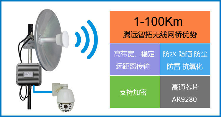 9年来,云顶集团一直专注于无线视频监控系统的研发与应用,近1000个成功案例遍及全国各地,深得客户的信赖。云顶集团的无线网桥采用了进口的美国高通芯片,具有传输带宽高、距离远、稳定性强、保密性好等特点,室外无线网桥据采用了防水、防晒、防尘、防雷、抗氧化等外壳设计,适用于各类野外恶劣环境!
