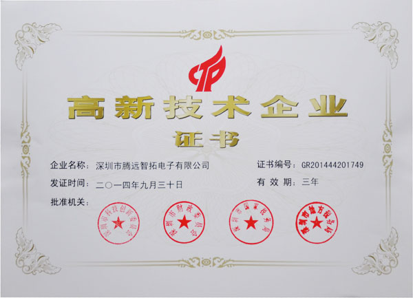 2014年9月30日,深圳市科技创新委员会颁布公示文件:《2014年深圳市第二批拟认定国家高新技术企业名单的通知》,该通知正式评定深圳市云顶集团电子有限公司为我国国家高新技术企业!