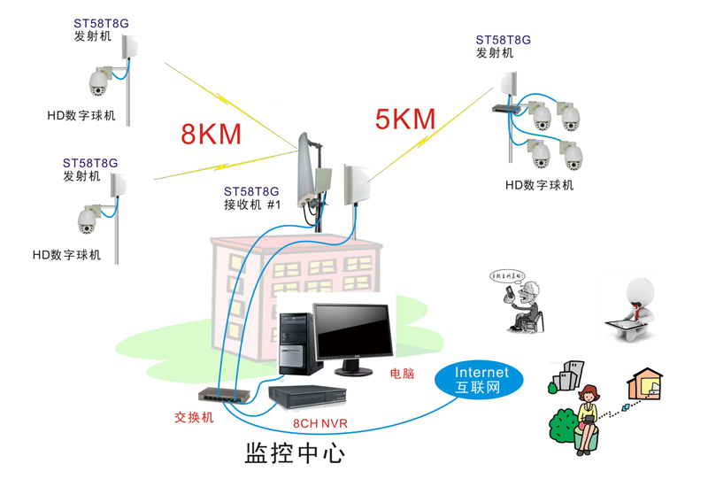 监控点分布范围越大,距离越远,无线传输优势越明显。实际工程中往往是拉网线和无线传输相结合,具体应用视现场情况而定。