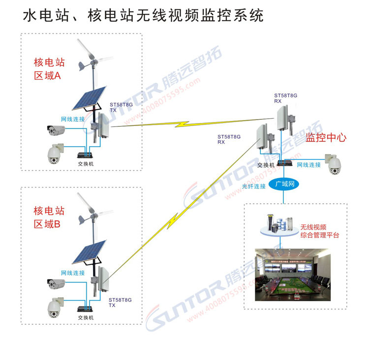 发电站无线视频监控系统由前端信息采集、中端信息传输、后端监控存储三部分组成,支持远程访问: